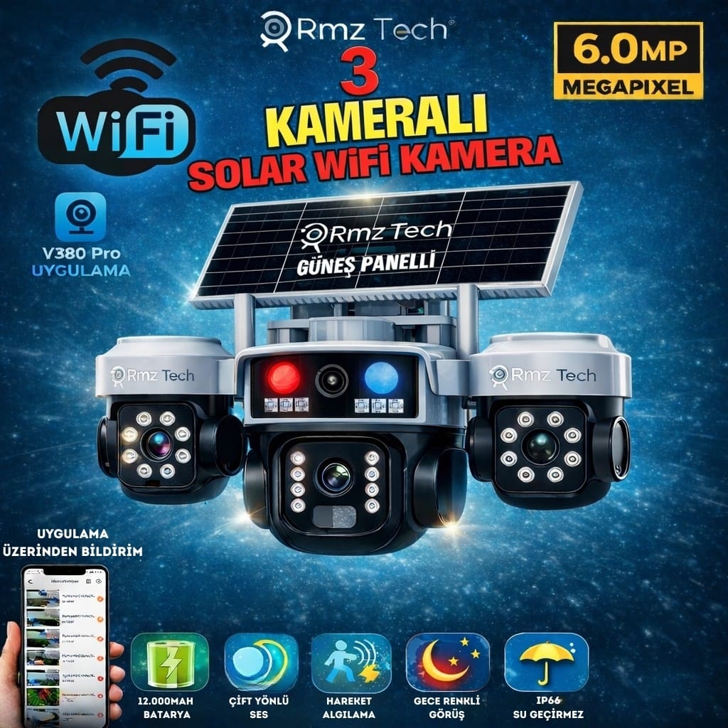 🌞📷 Avenir S263W WiFi Solar Kamera – 3 Kameralı Güçlü Koruma!