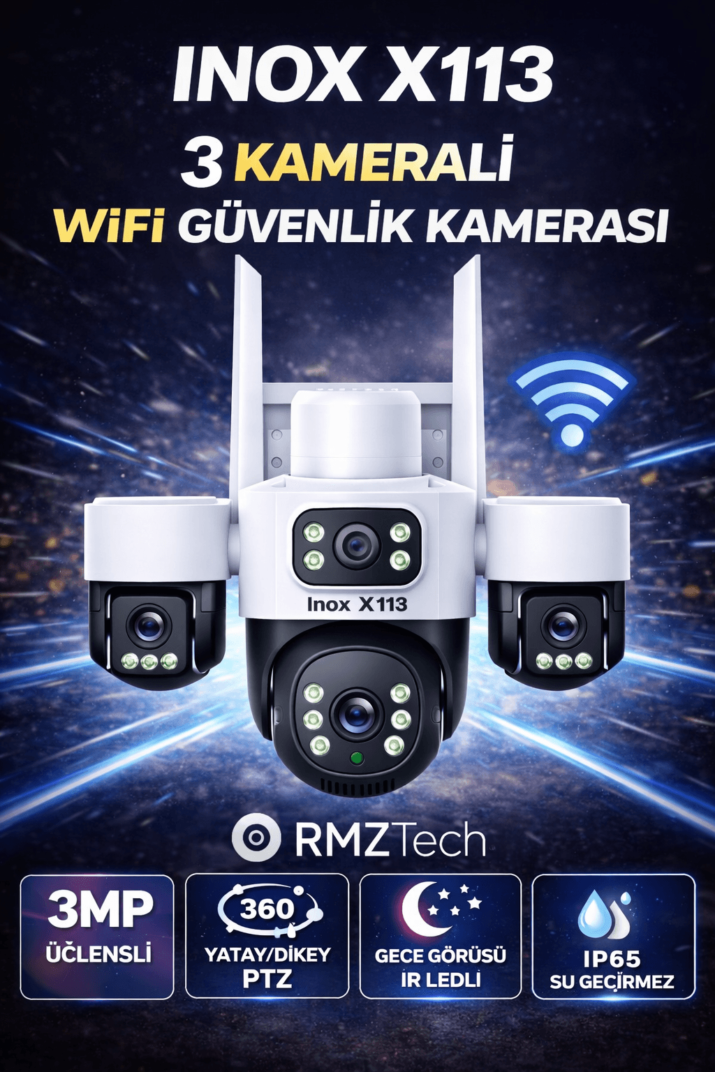 İNOX X113 3+3+3MP 3 LENSLİ WİFİ PTZ KAMERA